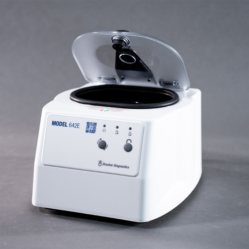 - Swing-Out Horizontal - Drucker Diagnostics’ patented swing-out horizontal rotor design produces ideal horizontally separated samples